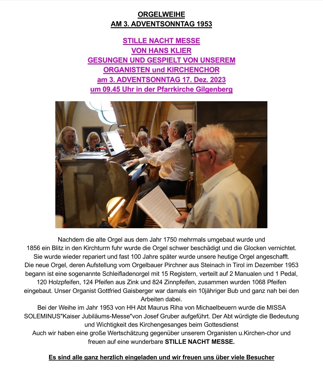 GOTTFRIED GAISBERGER Unser Organist und Kirchenchorleiter feiert am Samstag 11. März seinen 80. Geburtstag. Wir freuen uns auf eine schöne Hl. Messe