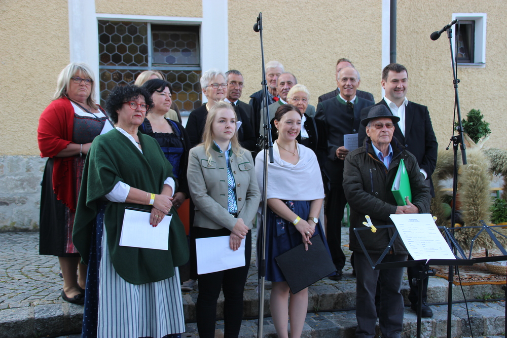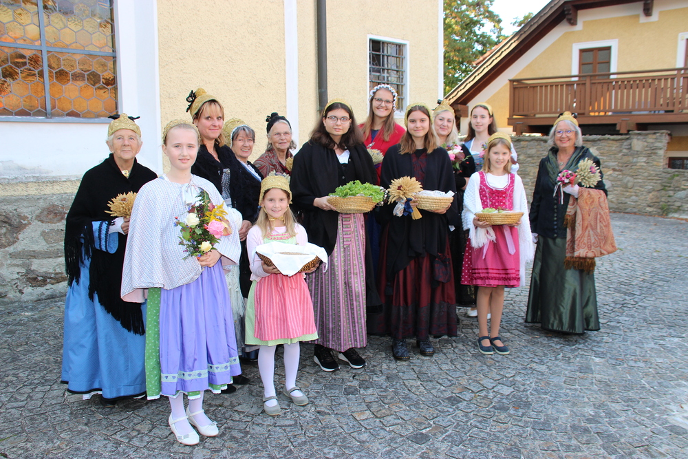 Bei strahlendem Sonnenschein fand um 9.15 Uhr die Segnung der Erntegaben und der Festgottesdienst am Ortsplatz statt.